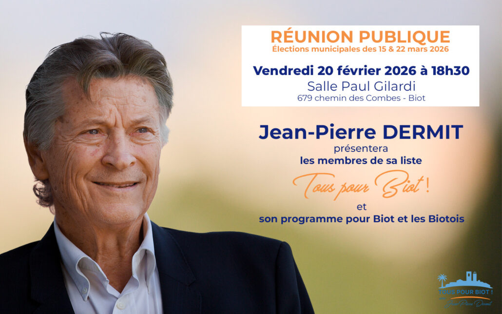 Jean-Pierre Dermit et toute l’équipe Tous pour Biot vous donnent rendez-vous pour une soirée d’échange et de présentation ouverte à tous les Biotois.